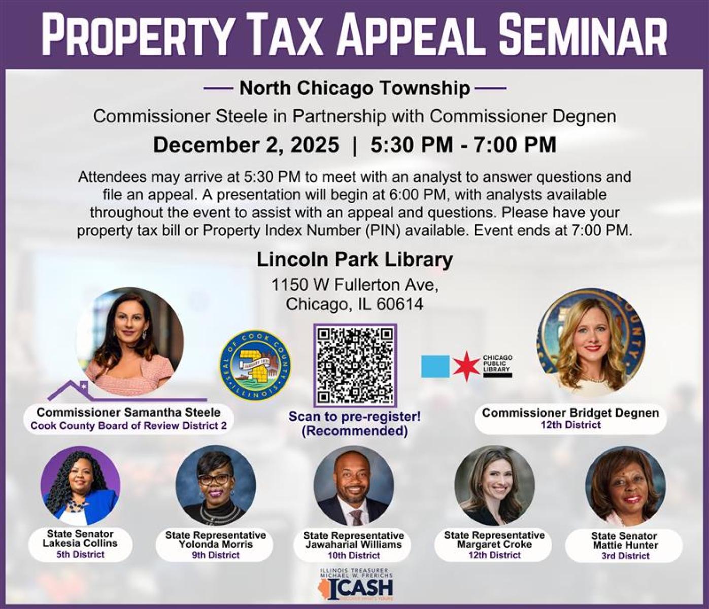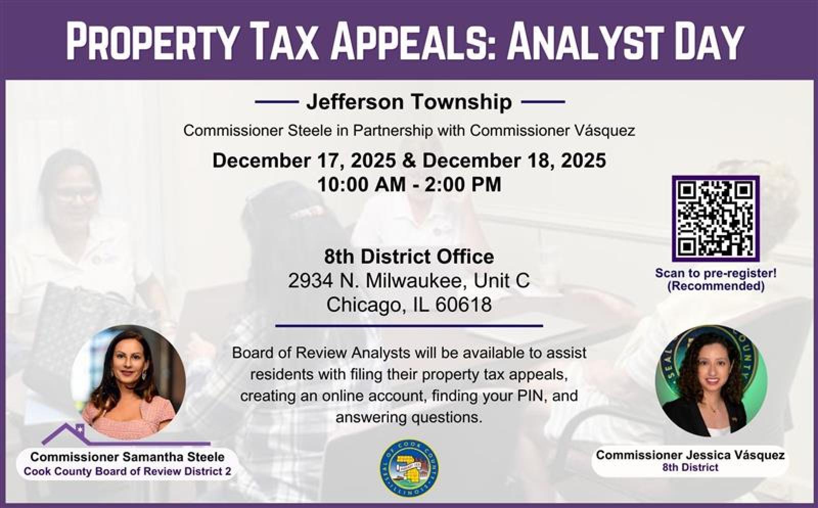 Since taking office, Commissioner Steele has led reforms that improve how taxpayers engage with the appeals process. She created Analyst Days, a program that sends analysts into neighborhoods to provide personalized assistance and launched the Board’s first Commercial Property Outreach Program to help small business owners understand their right to appeal. Steele has strengthened professional standards by requiring all District 2 staff to pursue the Certified Illinois Assessing Officer (CIAO) credential. In 2024, 13 team members became CIAO-designated, more than 10 percent of all new certifications in Illinois, ensuring that taxpayers receive guidance and decisions from highly trained professionals with advanced expertise in property assessments and appeals.