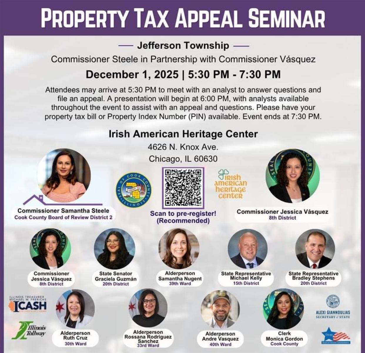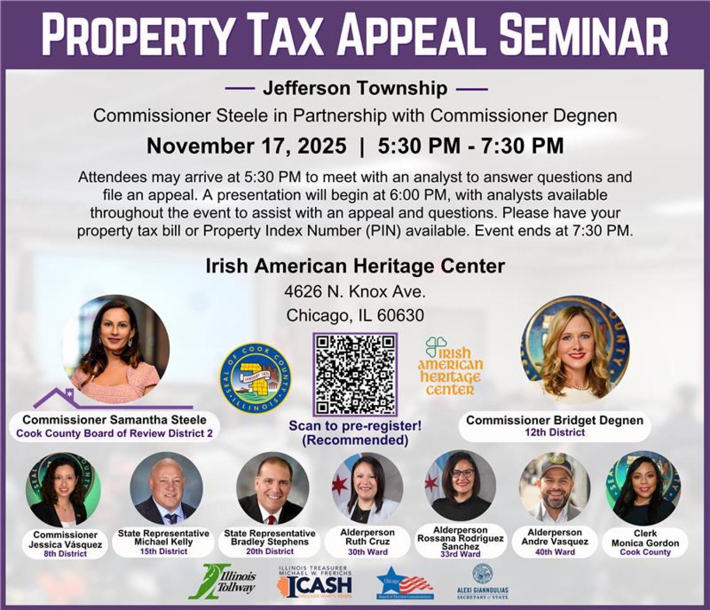 Samantha Steele serves as Commissioner for District 2 of the Cook County Board of Review, where she works to make the property tax system more fair, transparent, and accessible for taxpayers.