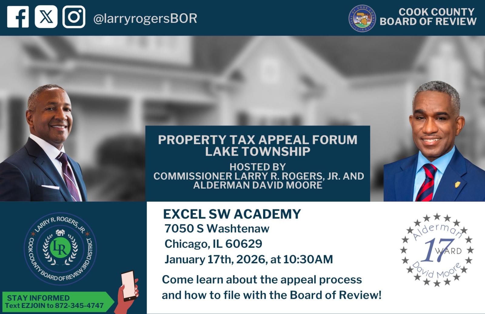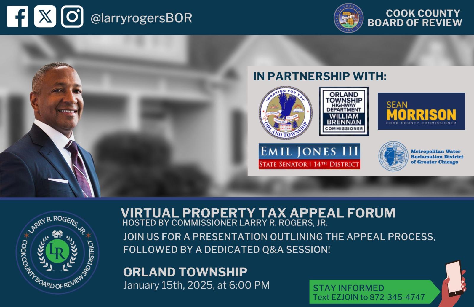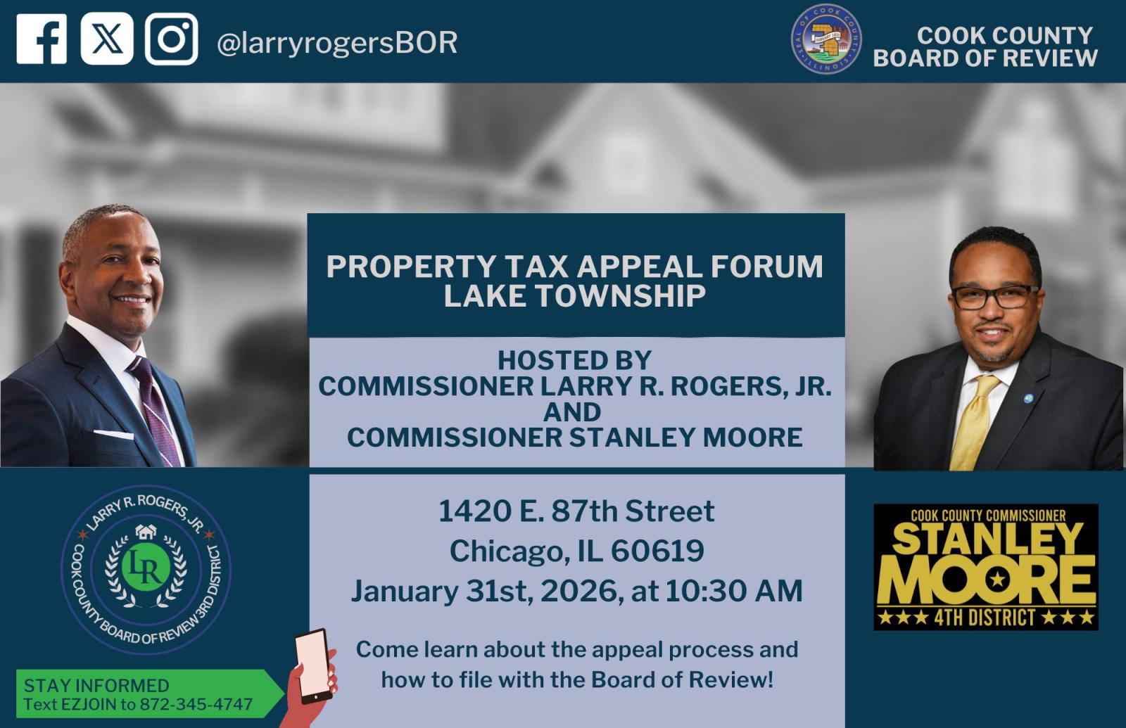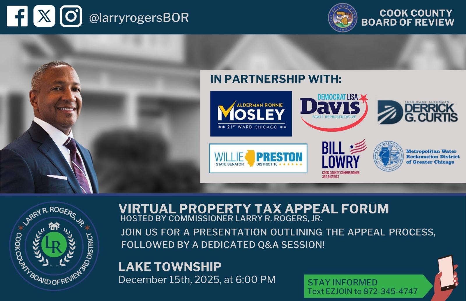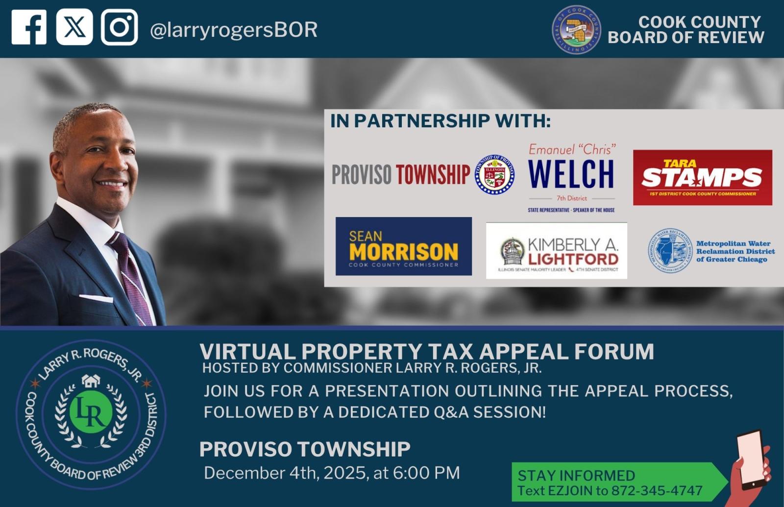 To stay up to date with all Board of Review news, dates, and upcoming events, subscribe to Commissioner Rogers’ texting service.